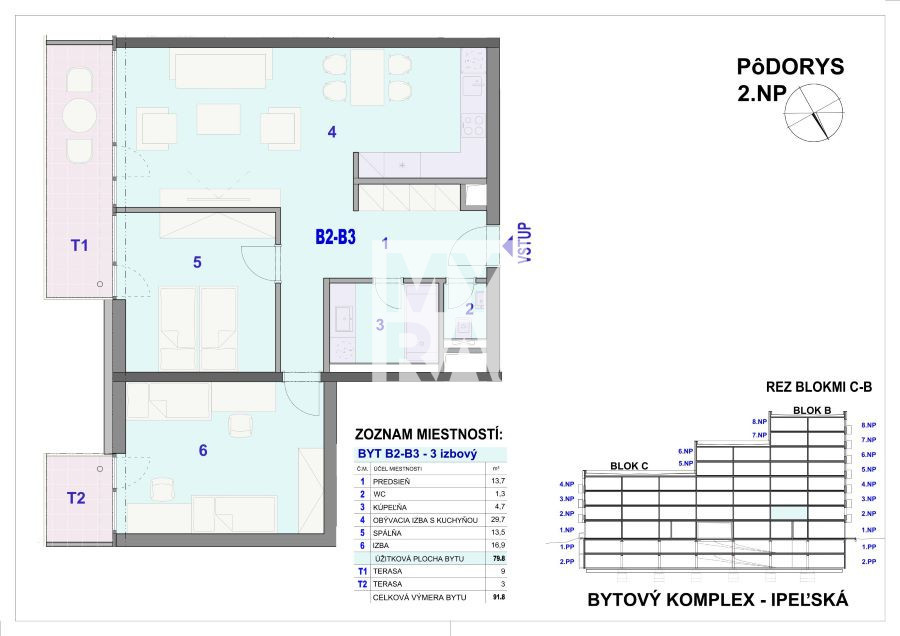 MYRA. Košice a Ing. Ivana Rolaková Vám ponúkajú na predaj 3-izbový priestranný holobyt B2B3 v Bytovom komplexe IPEĽSKÁ na sídlisku Terasa v Košiciach pri Univerzitnej nemocnici L. Pasteura v Košiciach. Bytový komplex IPEĽSKÁ ponúka v prvej etape 74 bytov s terasami a balkónmi, 118 parkovacích miest v podzemnej garáži a 71 pivníc rozdelených na 8 nadzemných podlaží a 2 podzemné podlažia. Na prízemí/1.NP bytového komplexu sa bude nachádzať 5 nebytových priestorov.